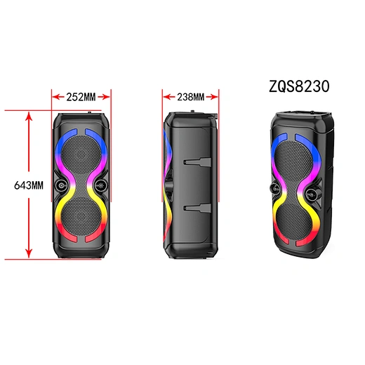 Karaoke Bluetooth zvučnik ZQS-8230 W – Bluetooth, WiFi, Subwoofer je prenosivi zvučnik s ugrađenim LED svjetlima