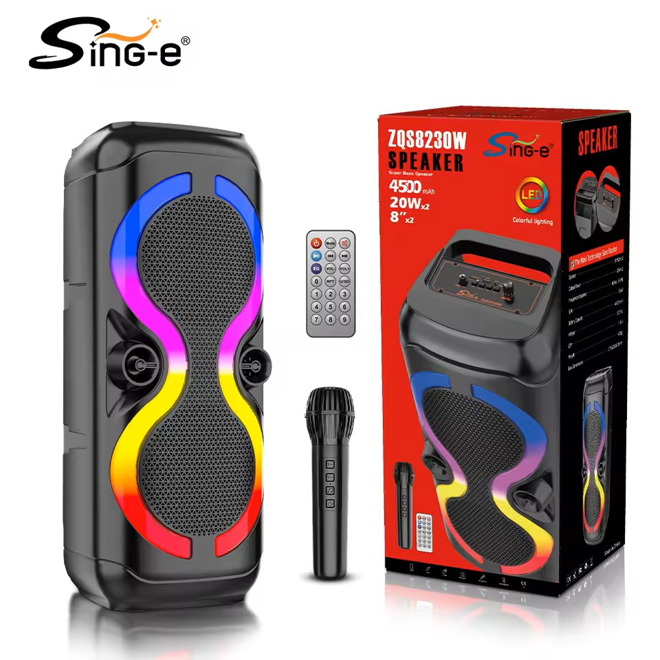 SING-E ZQS8230W je snažan prenosni party zvučnik sa dvostrukim 8” driverima, dizajniran za karaoke, zabave i korištenje na otvorenom. Kombinuje dobar zvuk, bežično povezivanje i atraktivne LED efekte u praktičnom i mobilnom kućištu.