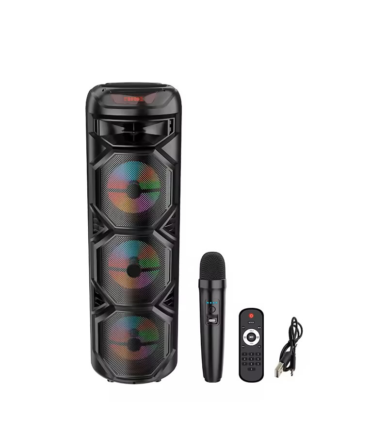 Predstavljamo vam potpuno novi proizvod visokog kvaliteta. Sa snagom od 40W, ovaj zvučnik donosi uzbudljiv doživljaj zvuka uz LED svetla koja prate ritam muzike. Ugrađeni stereo zvuk i 360° stereo pružaju potpuno uživanje. Baterija kapaciteta 6000 mAh omogućava dugotrajnu reprodukciju zahvaljujući visokokapacitetnoj litijumskoj bateriji koja se može ponovno puniti. Uživajte u slobodnom slušanju FM radija i podršci za različite formate muzičkih fajlova. Bluetooth 5.0 omogućava povezivanje sa svim Bluetooth uređajima, dok podrška za spoljne audio ulaze pruža dodatnu fleksibilnost. TWS funkcija omogućava povezivanje dva zvučnika za sinhronizovanu reprodukciju. Jednostavna kontrola putem tastera omogućava vam lako upravljanje funkcijama, dok bežični mikrofon oslobađa vas od žica i omogućava trenutno uključivanje režima karaoke.