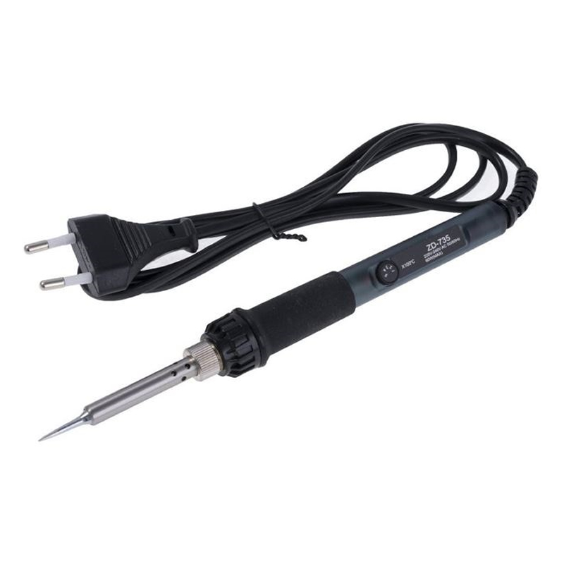 Lemilica klase ZD-735 sa regulacijom toplote, snage 60W, u obliku olovke Lemilica sa podešavanjem toplote (5 različitih nivoa) Drška od silikonske plastike Zamenjivi vrh Kontrola grejanja Temperatura: +200 … +480 °C Lemilica: 220V Dizajn donjeg dela Tip grejača: keramički Snaga: 60W